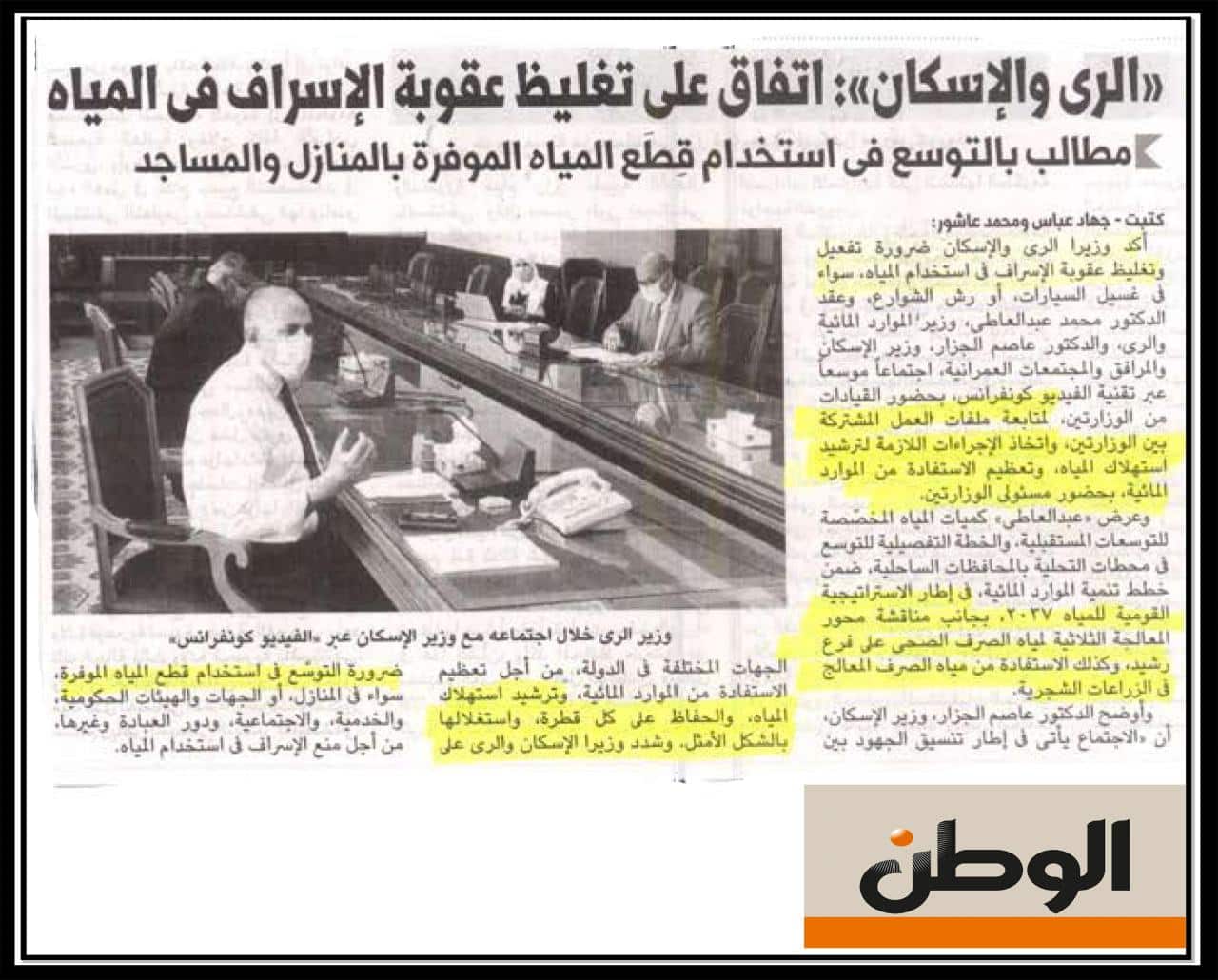 الري والاسكان : اتفاق على تغليظ عقوبة الاسراف في المياه .