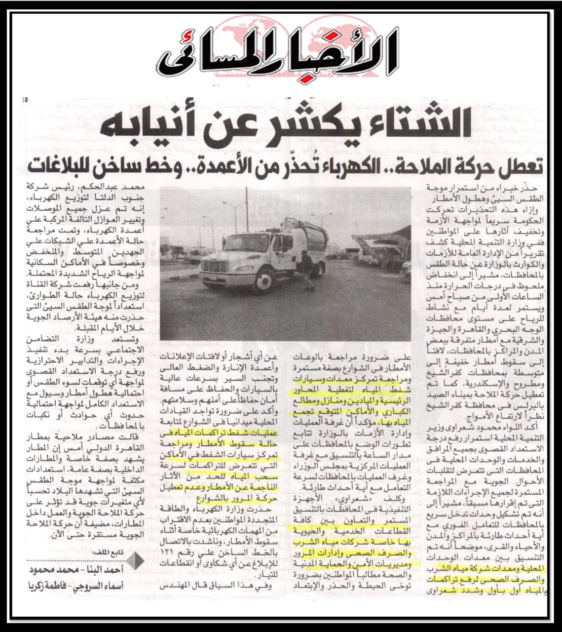الشتاء يكشر عن انيابة …. وخط ساخن للبلاغات .
