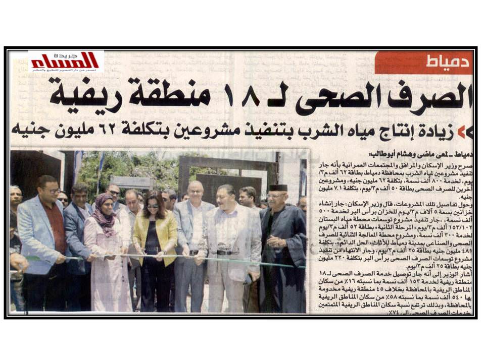 الصرف الصحي ل18 منطقة ريفية ..زيادة انتاج مياه الشرب بتنفيذ مشروعين بتكلفة 62 مليون جنية