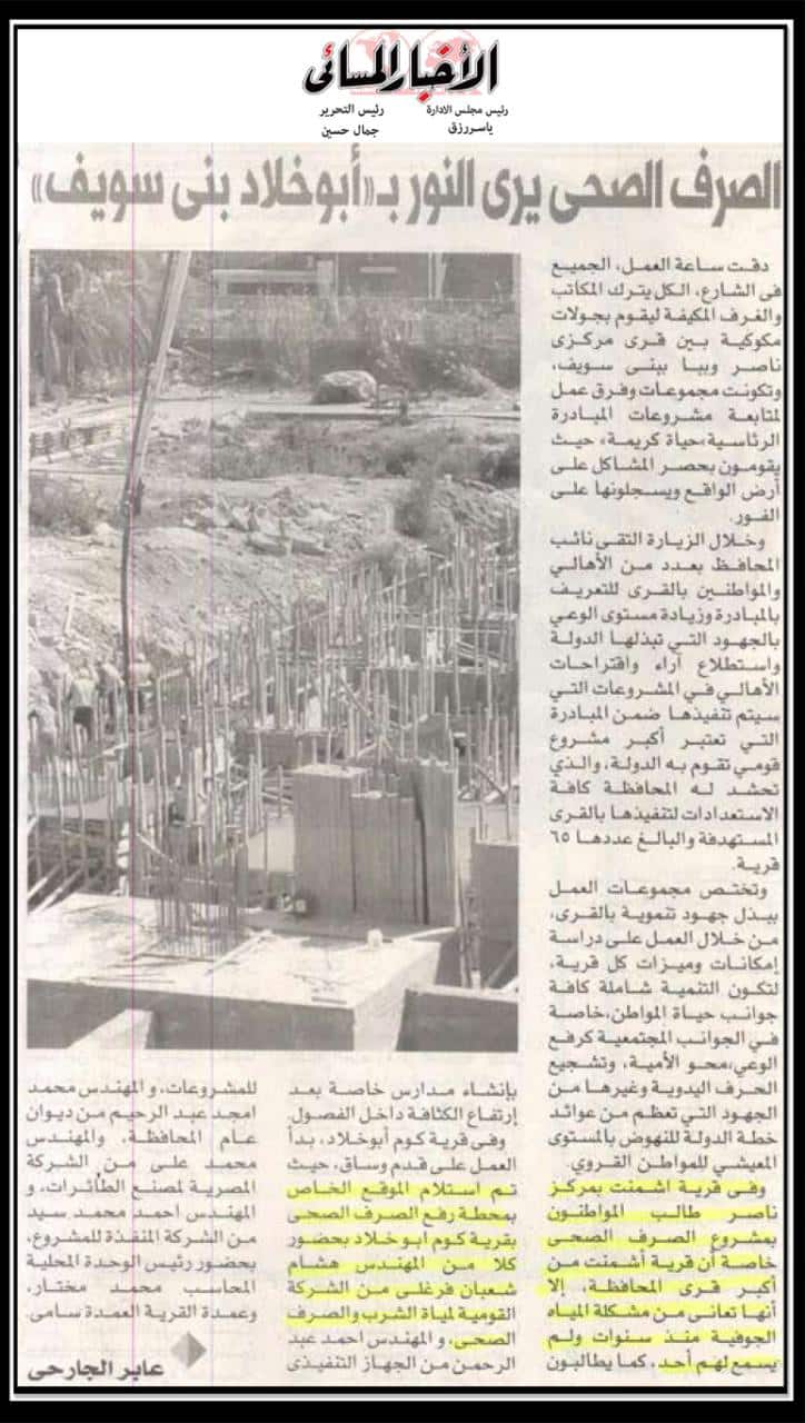 الصرف الصحي يرى النور ” أبو خلاد بني سويف “