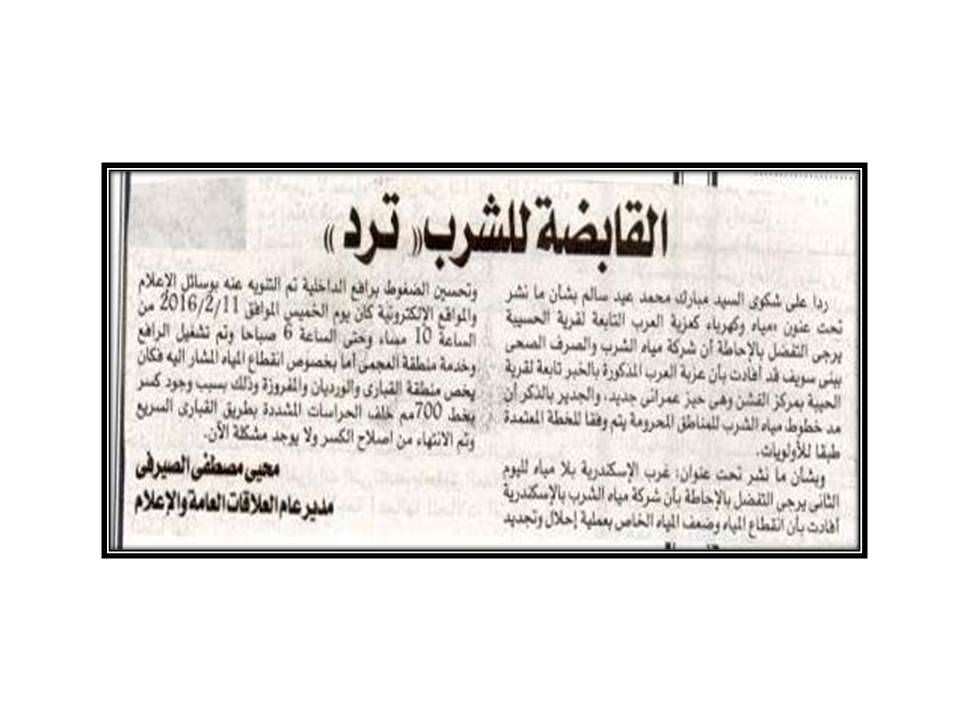 القابضة للشرب ( ترد ) ….2016/2/22