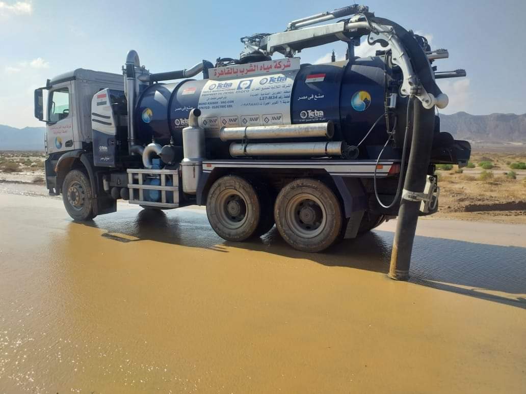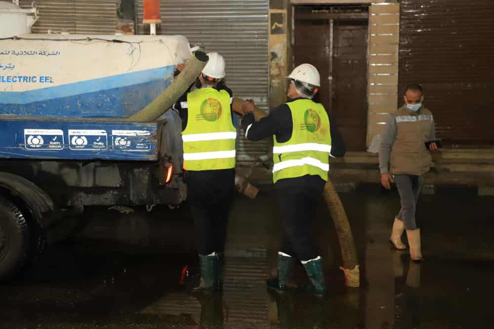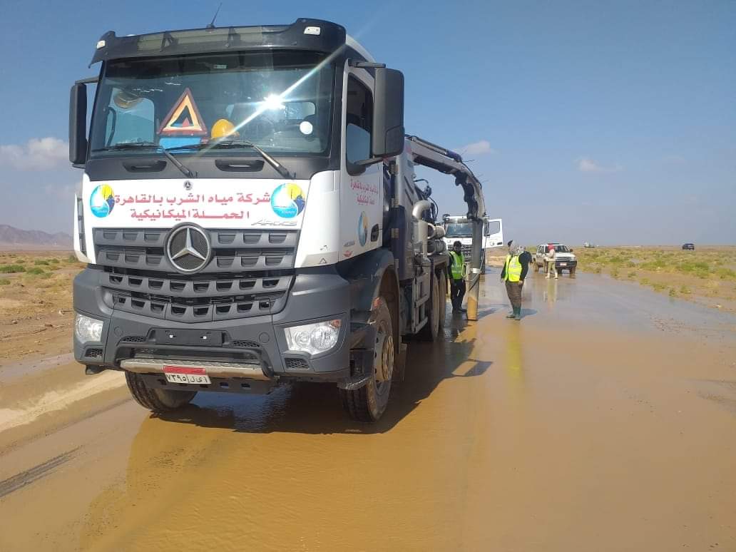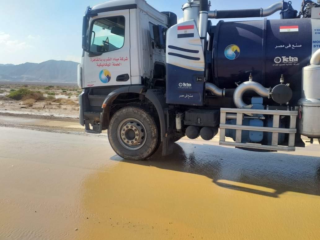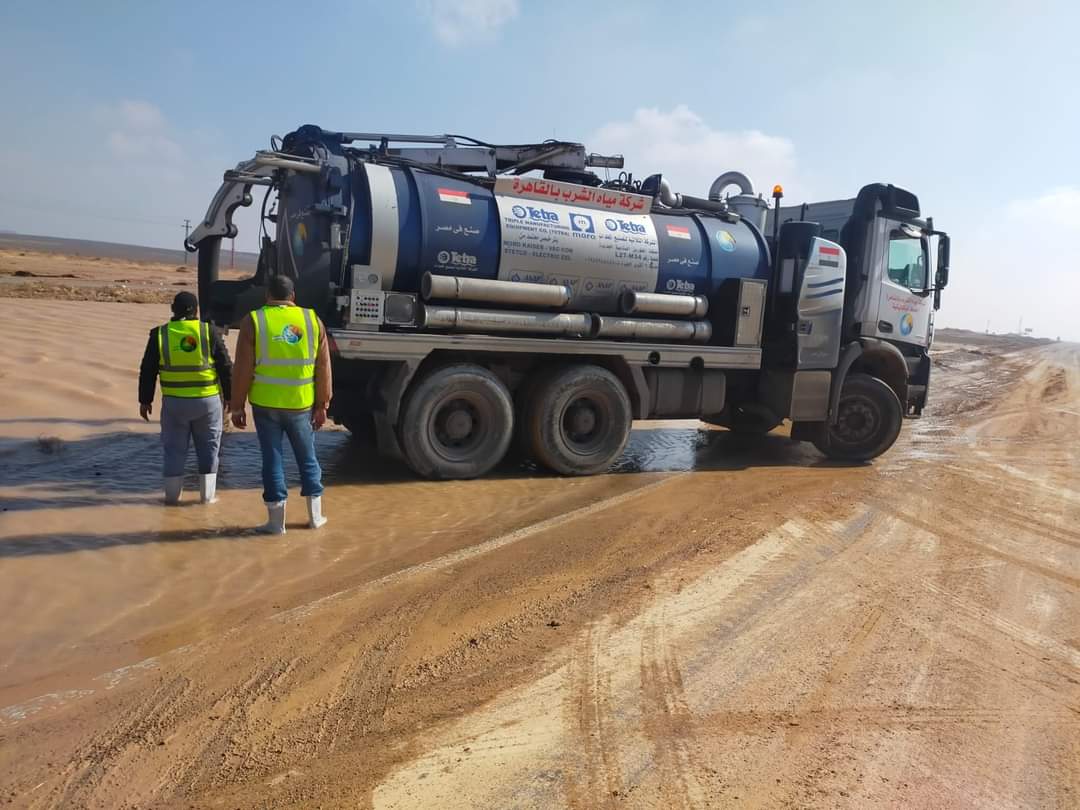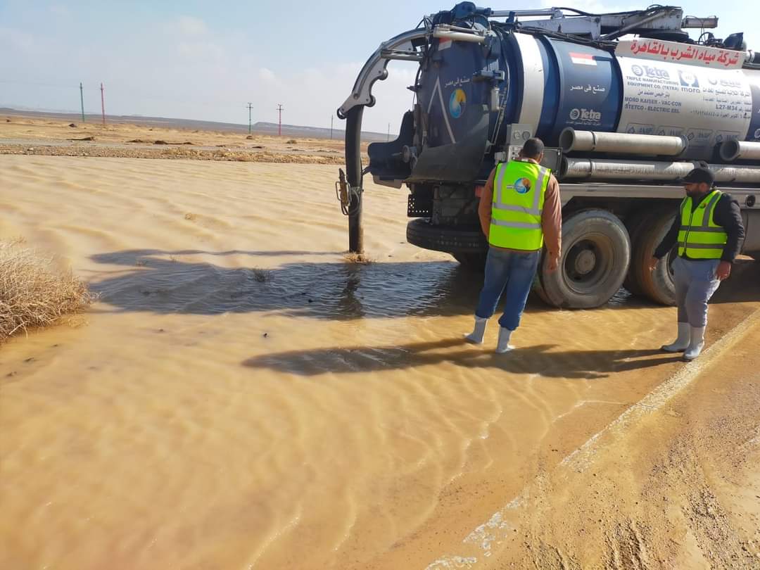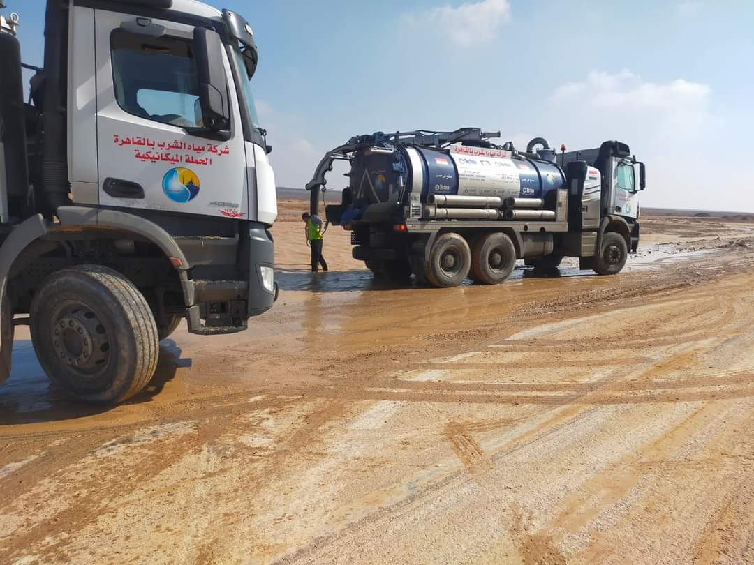 القابضة للمياه الدفع بسيارات ومعدات من القاهرة والجيزة لسرعه الانتهاء من سحب مياه الأمطار برأس غارب.