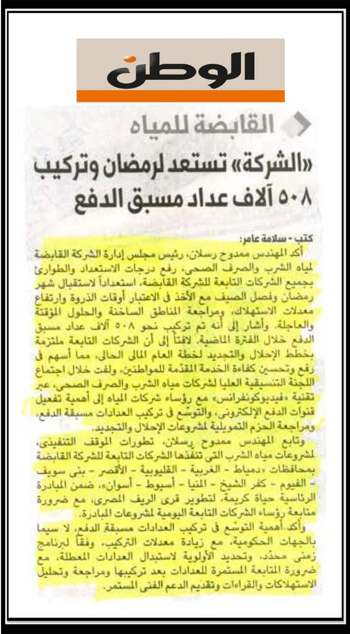 القابضة للمياه: “الشركة تستعد لرمضان وتركيب ٥٠٨ آلاف عداد مسبق الدفع