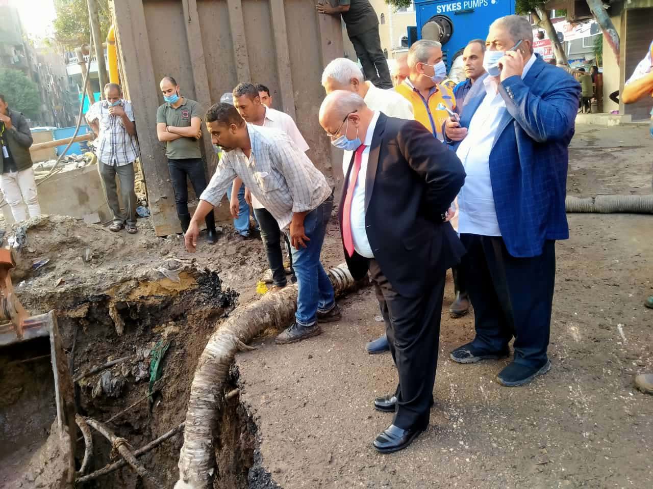 وانتقل كلا من المهندس مصطفى الشيمى رئيس شركة مياه الشرب بالقاهرة، والمهندس عادل حسن رئيس شركة الصرف الصحى بالقاهرة إلى موقع الكسر ومباشرة أعمال الاصلاح.