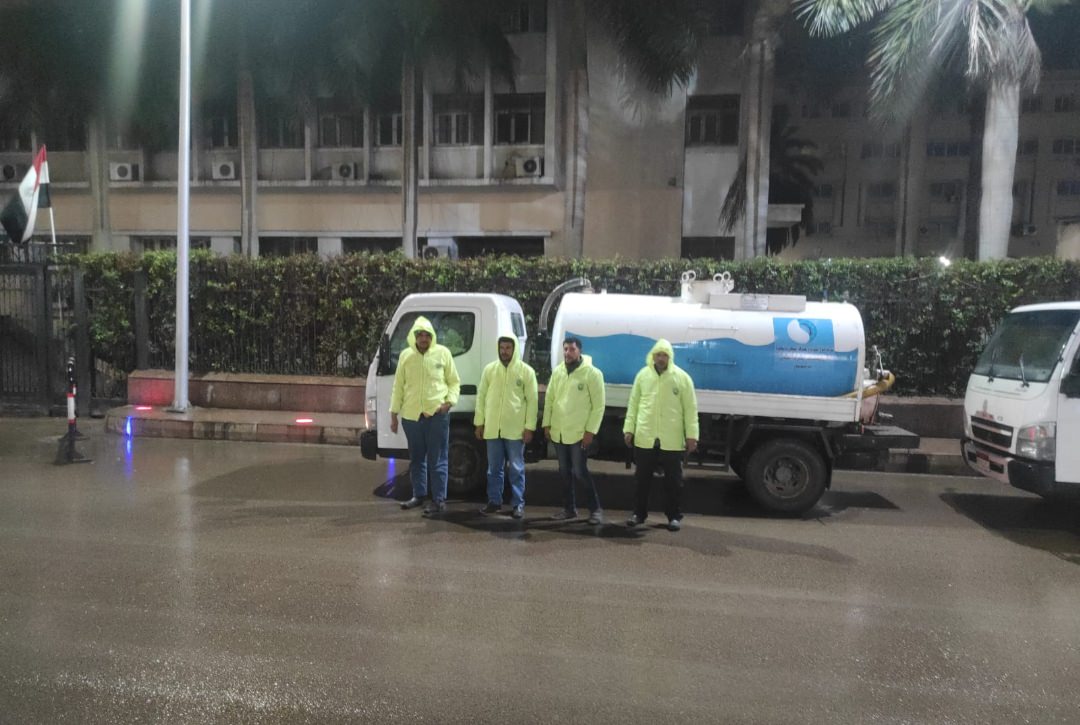 القابضة للمياه تتابع جهود الشركات التابعة فى التعامل مع مياه الأمطار .