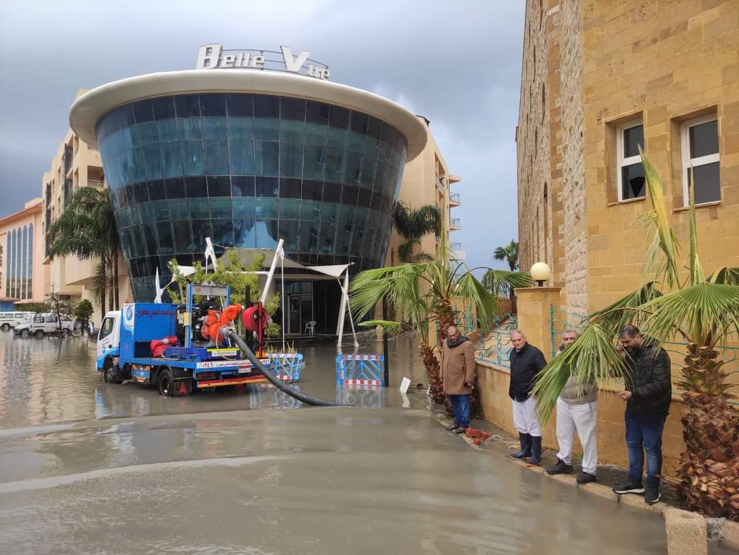وتابع استمرار عملية إزالة مياه الامطار المتراكمة طوال أمس حتي الساعات الاولي من اليوم التالي وتابع فريق الازمات والطوارئ العمل في المناطق والشوارع الفرعية صباح اليوم.