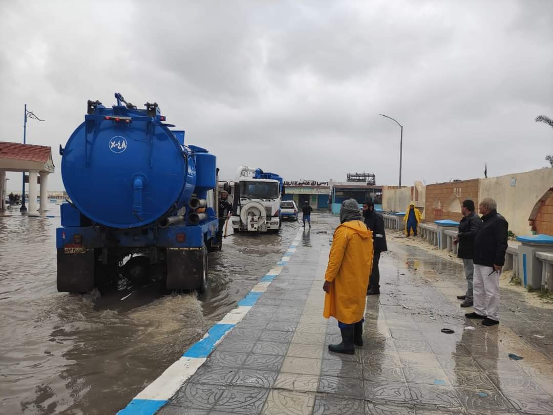 القابضة للمياه تتابع جهود شركة مياه مطروح فى إزالة تجمعات مياه الأمطار
