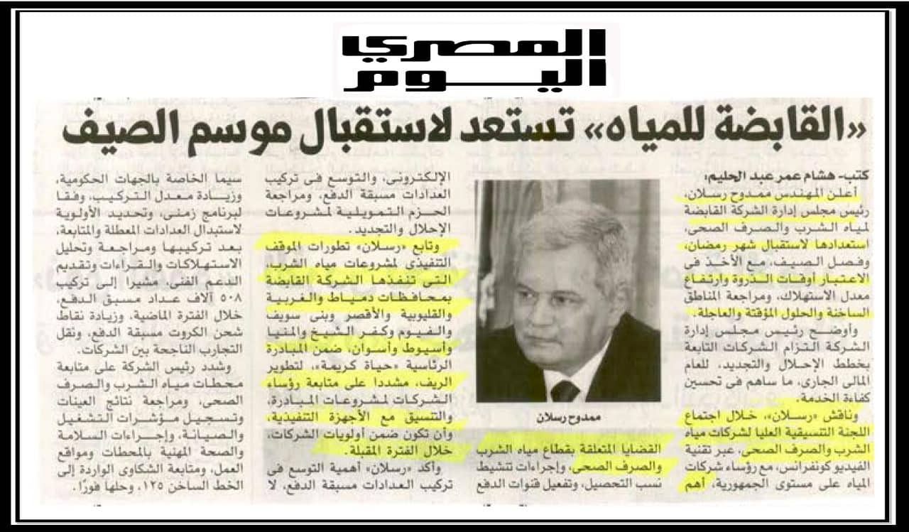 القابضة للمياه تشارك فى جائزة مصر للتميز الحكومي وتؤكد: التميز نهج مؤسسي مستدام