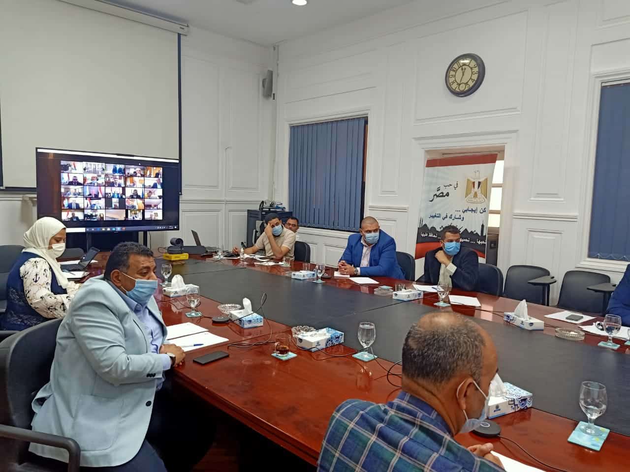 جاء ذلك أثناء اجتماع اللجنة التنسيقية العليا لشركات مياه الشرب والصرف الصحى، عبر تقنية الفيديوكونفراس مع رؤساء شركات المياه على مستوى الجمهورية لمناقشة أهم الموضوعات والقضايا التى تتعلق بقطاع مياه الشرب والصرف الصحى ومتابعة الإجراءات الإحترازية المتبعة بالشركات لمواجهة تداعيات فيروس كورونا المستجد والتزام العاملين بالإجراءات الوقائية، والدور المجتمعى للشركات لمنع تفشى هذا الوباء من خلال خطط تطهير وتعقيم المنشآت العامة والشوارع للحد من انتشاره، حرصاً على صحة المواطنين.