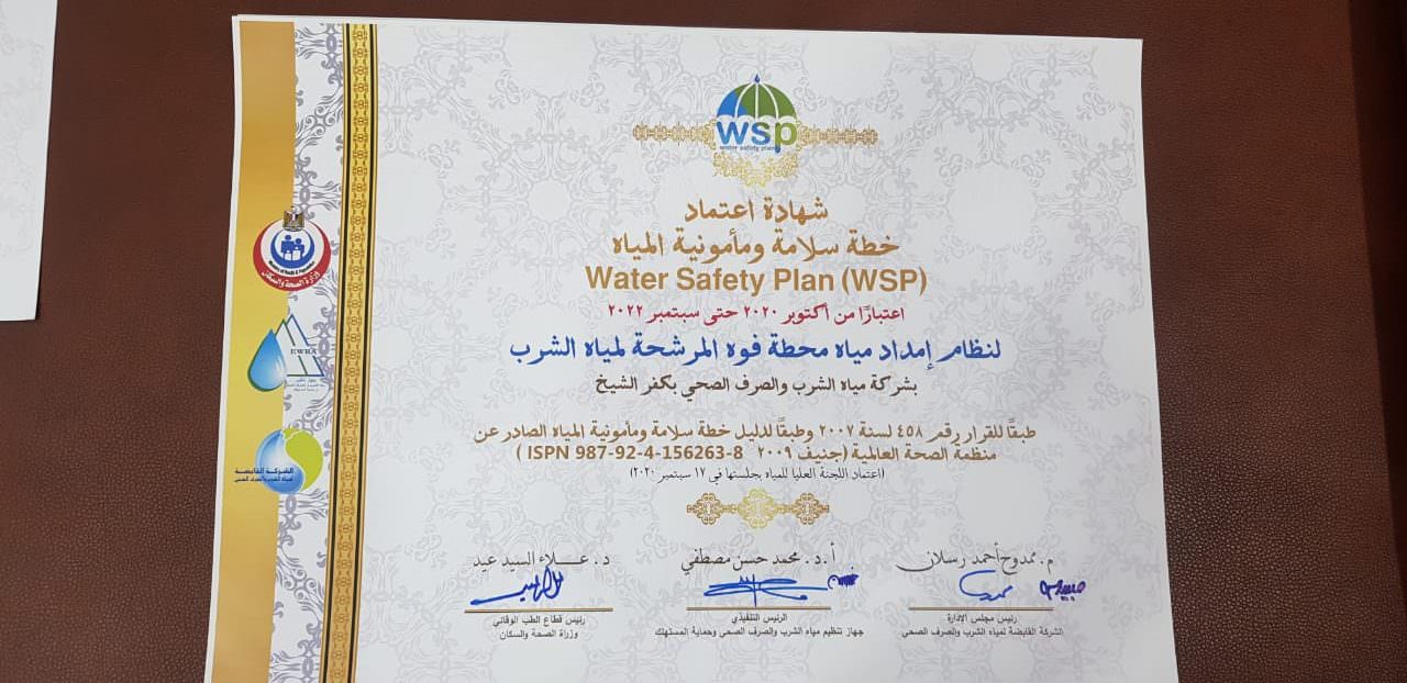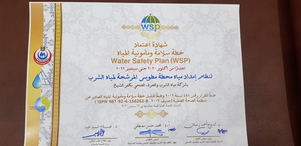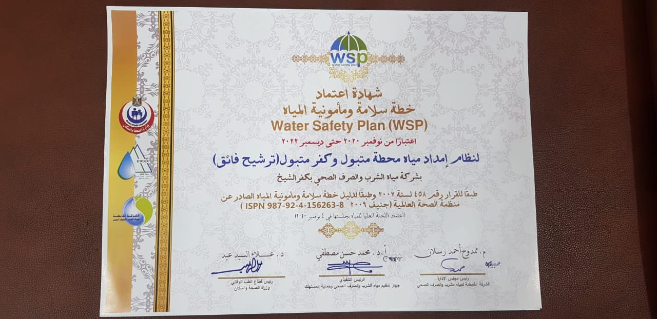 فيما أعلن المهندس محمد مفتاح رئيس شركة مياه الشرب والصرف الصحي بكفرالشيخ، أنه تم منح محطات مياه الشرب بفوة ومطوبس ومتبول شهادة اعتماد خطة وسلامة مأمونية المياه، من اللجنة العليا للمياه والتى تضم ممثلين عن وزارات الصحة والرى والبيئة والجهاز التنظيمى لمياه الشرب والصرف الصحي وحماية المستهلك والشركة القابضة لمياه الشرب والصرف الصحي.