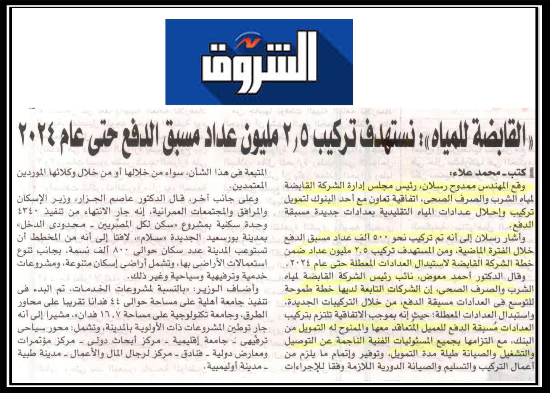 القابضة للمياه: نستهدف تركيب 2.5 مليون عداد مسبق الدفع حتى عام 2024
