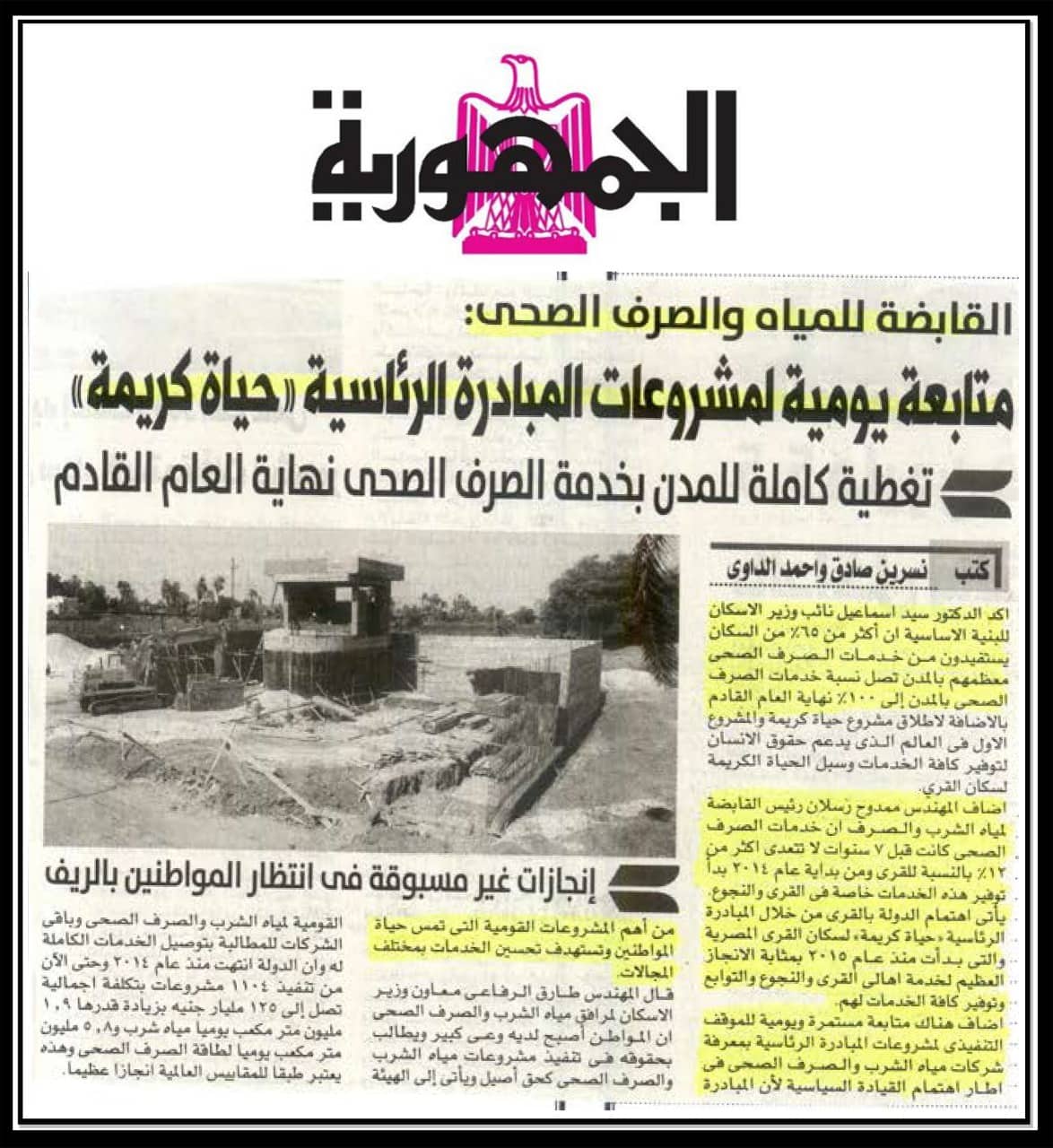 القابضة للمياه والصرف الصحي: متابعة يومية لمشروعات المبادرة الرئاسية حياة كريمة
