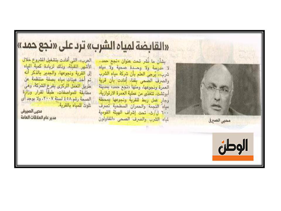 القابضة لمياه الشرب : ترد على (نجع حمد ) بمدينة ابو تشيت …2016/4/13
