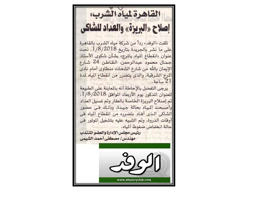 القاهرة لمياه الشرب : إصلاح البريزة والعداد للشاكي .