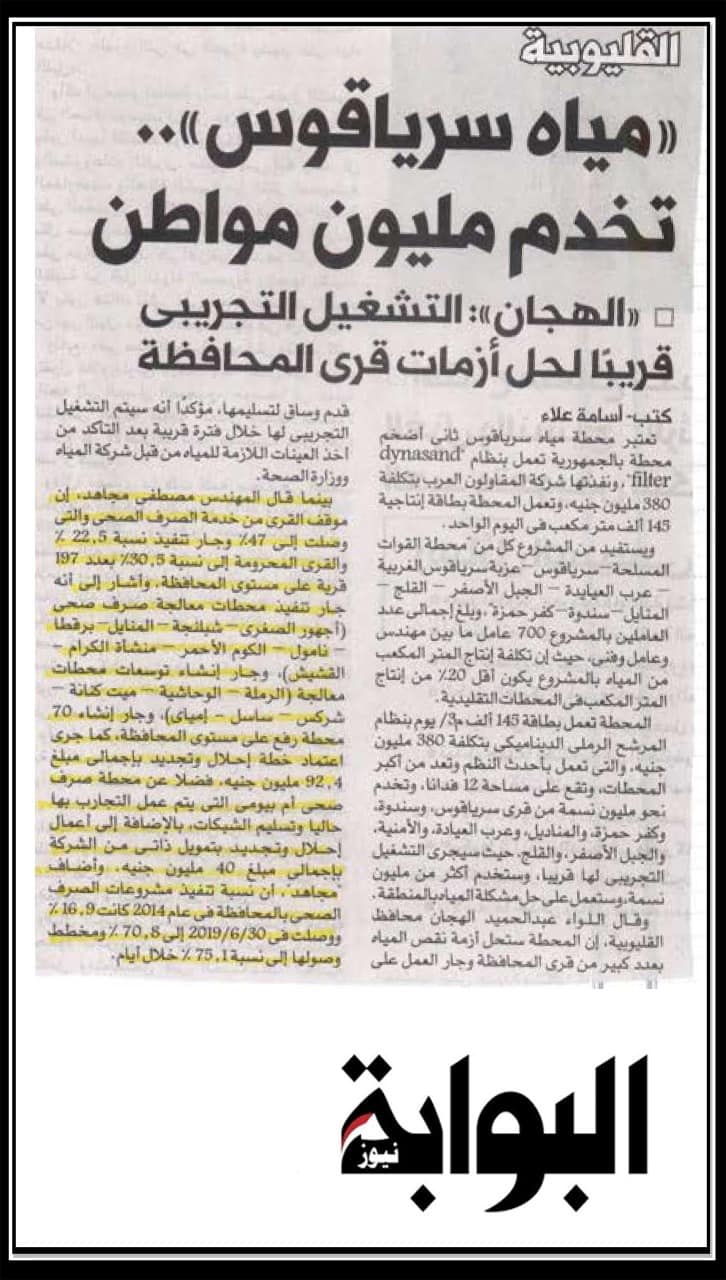 القليوبية: “مياه سرياقوس” تخدم مليون مواطن .