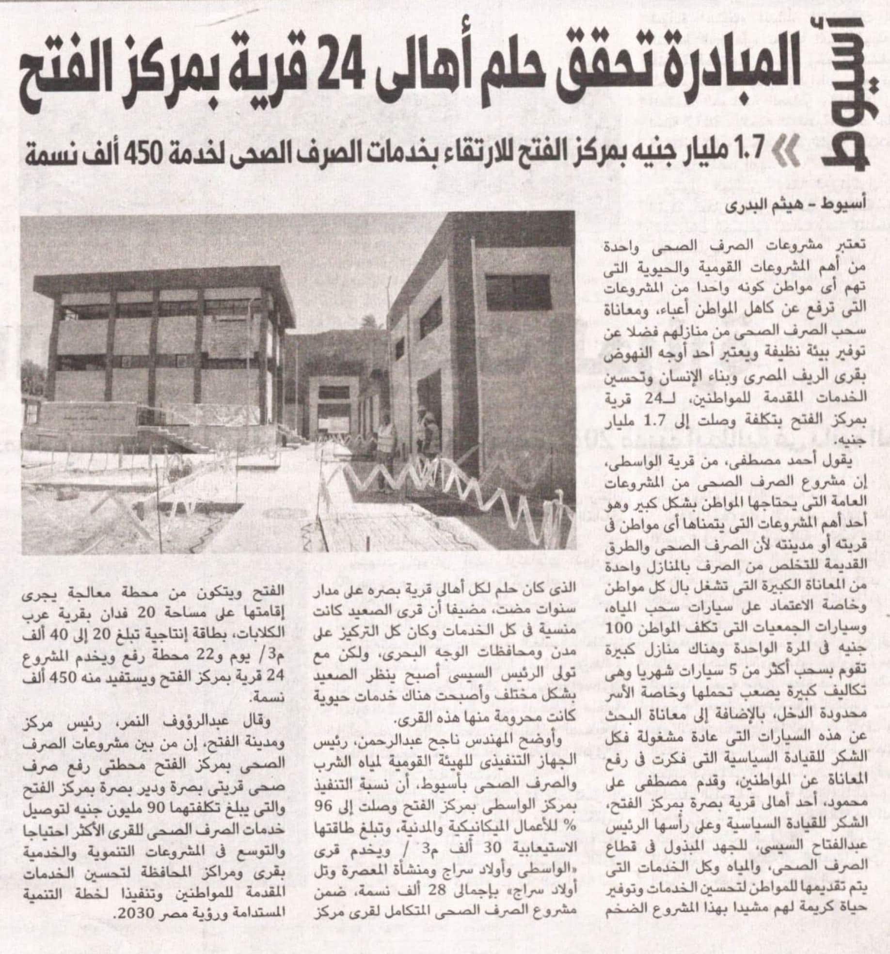 المبادرة تحقق حلم أهالي 24 قرية بمركز الفتح …1.7 مليار جنية بمركز الفتح للارتقاء بخدمات الصرف الصحي لخدمة 450 الف نسمة.
