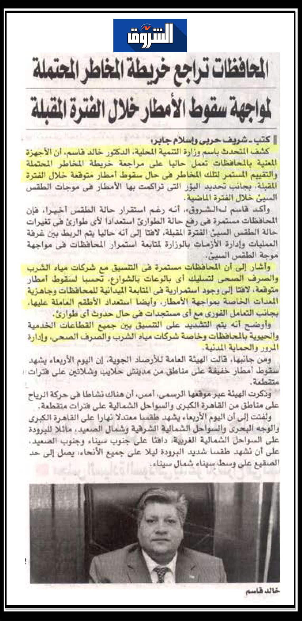 المحافظات تراجع خريطة المخاطر المحتملة لمواجهة سقوط الامطار خلال الفترة المقبلة .
