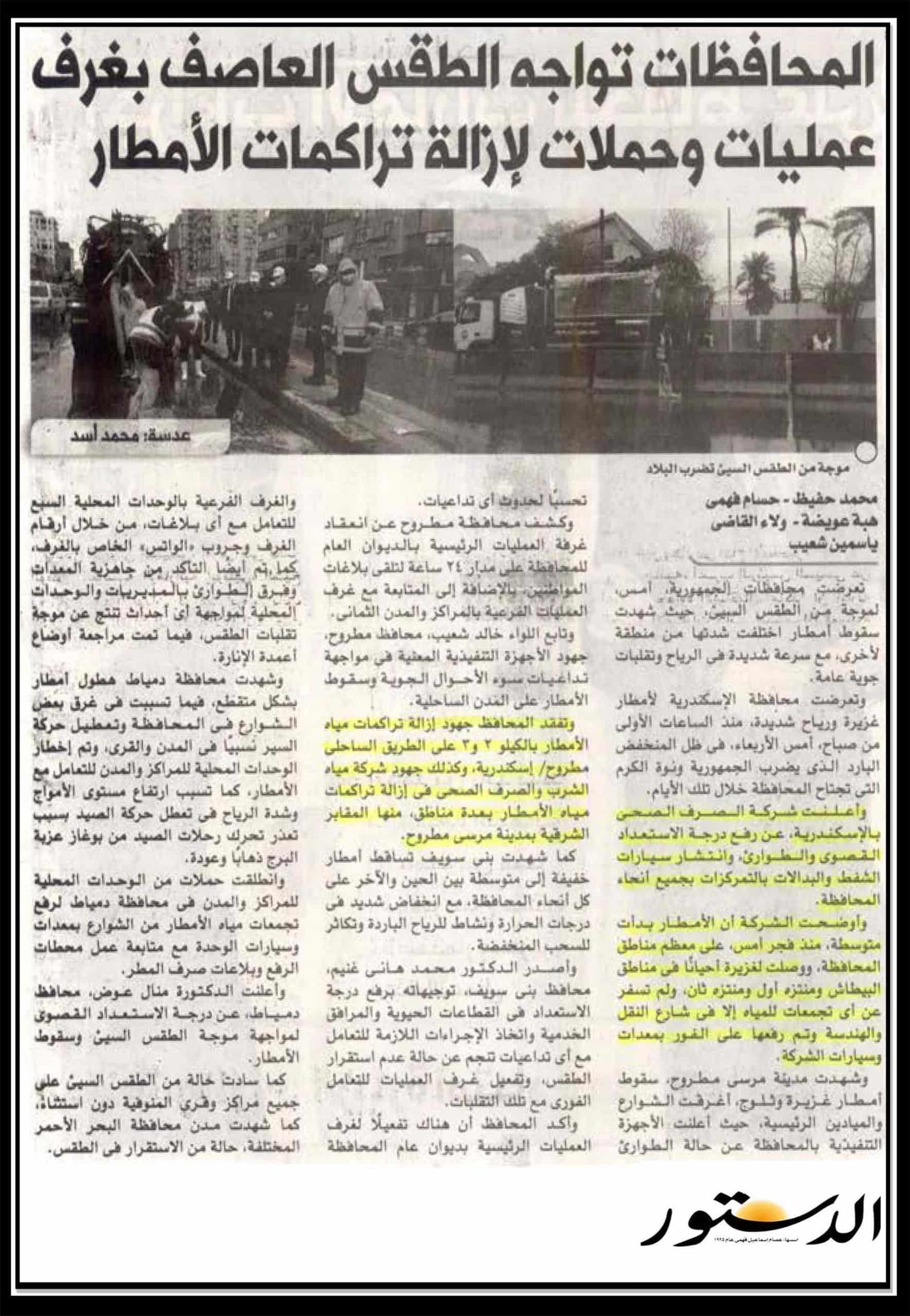 المحافظات تواجه الطقس العاصف بغرف عمليات وحملات لإزالة تراكمات الأمطار.
