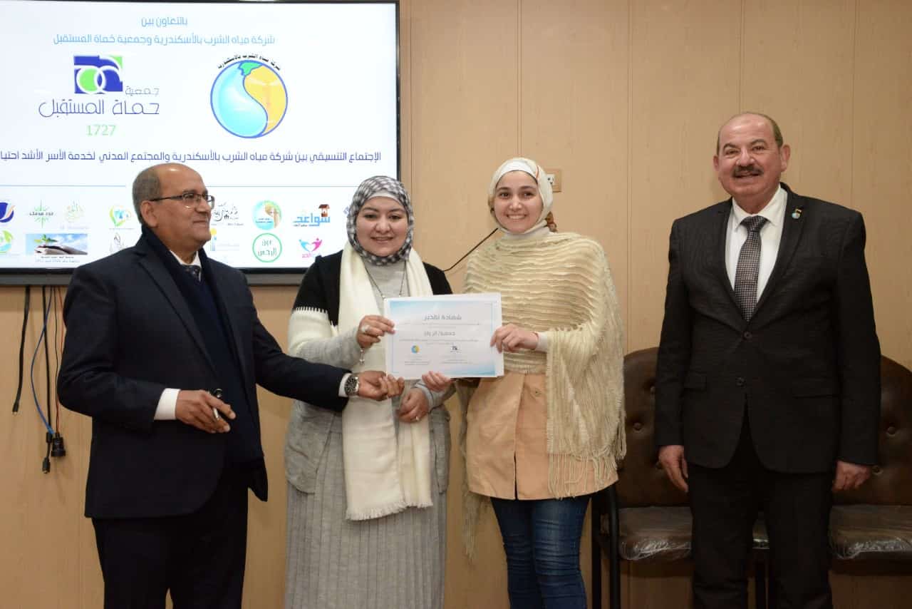 جاء ذلك بحضور اللواء محمود نافع رئيس مجلس إداره شركة الصرف الصحي بالإسكندرية، والدكتورة ماجدة جلالة وكيل وزارة التضامن الإجتماعي بالإسكندرية، والدكتور فرج محسن غانم مدير إدارة التوجيه بالأزهر الشريف، والدكتورة مروة الدريني رئيس مجلس إدارة جمعية حماة المستقبل، وعدد كبير من رؤساء مجلس إدارات مؤسسات وجمعيات المجتمع المدني بالإسكندرية، ومسئولى المشاركة المجتمعية للشركات أموك وسيدبك.