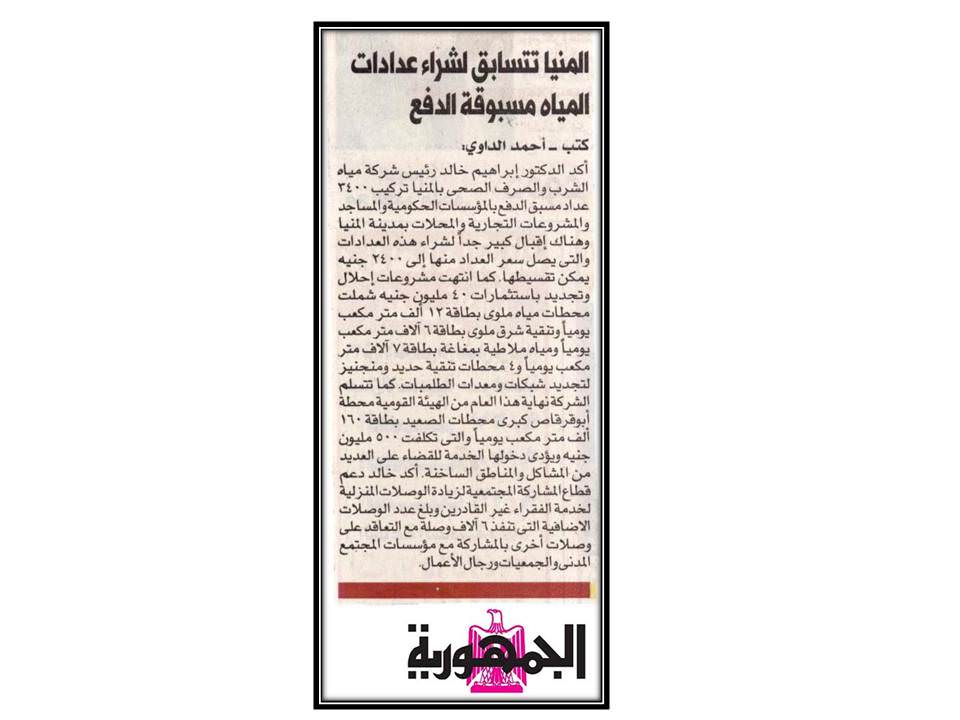 المنيا تتسابق لشراء عدادات المياه مسبوقة الدفع .