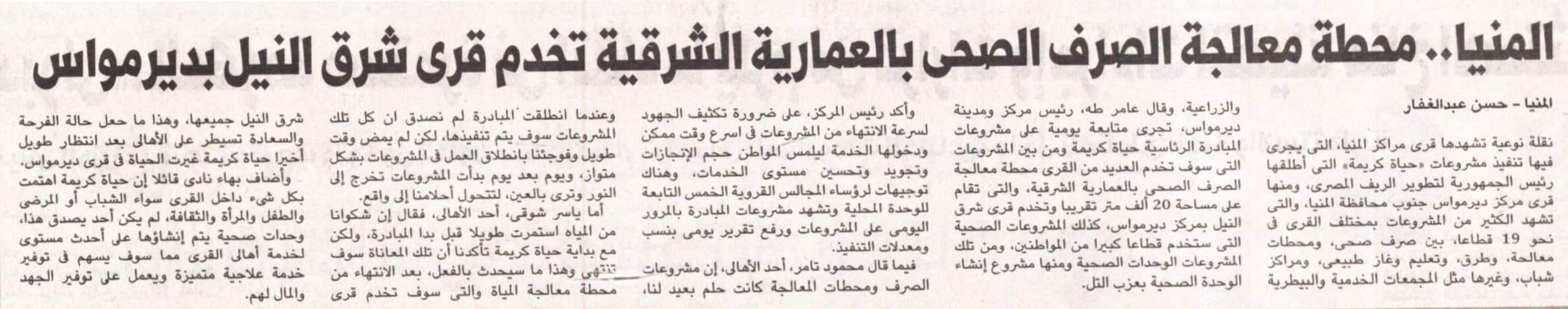 المنيا… محطة معالجة الصرف الصحي بالعمارية الشرقية تخدم قري شرق النيل بدير مواس.