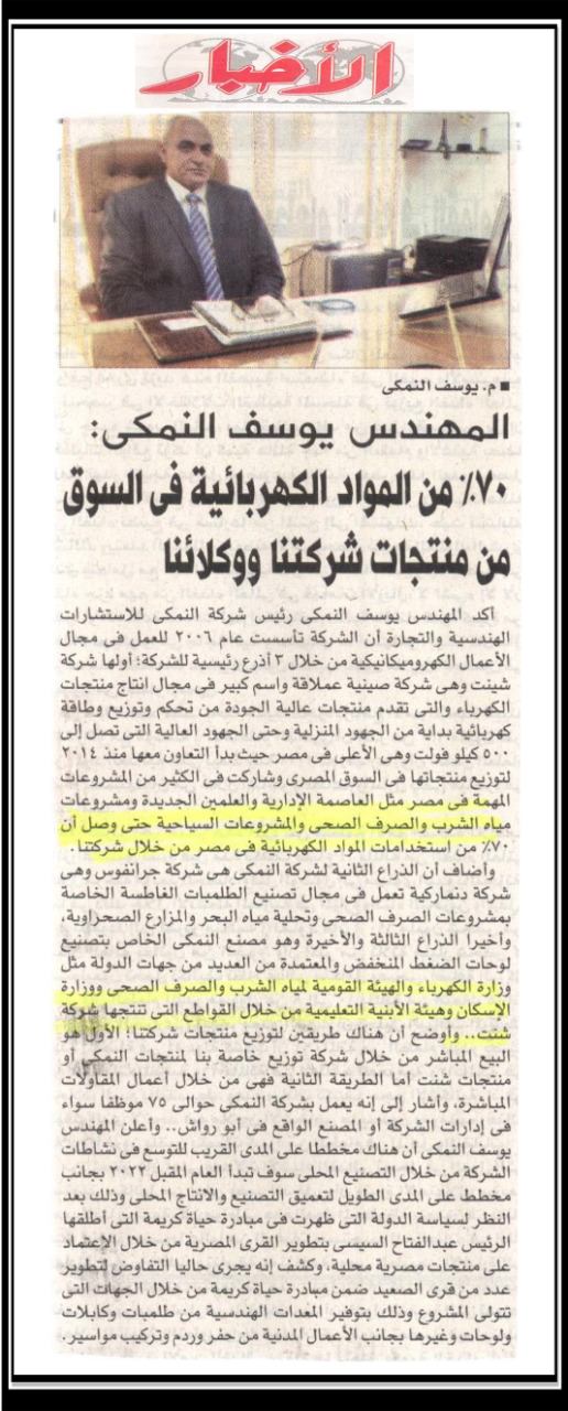 المهندس يوسف النمكي: “٧٠٪ من المواد الكهربائية في السوق من منتجات شركاتنا ووكلائنا