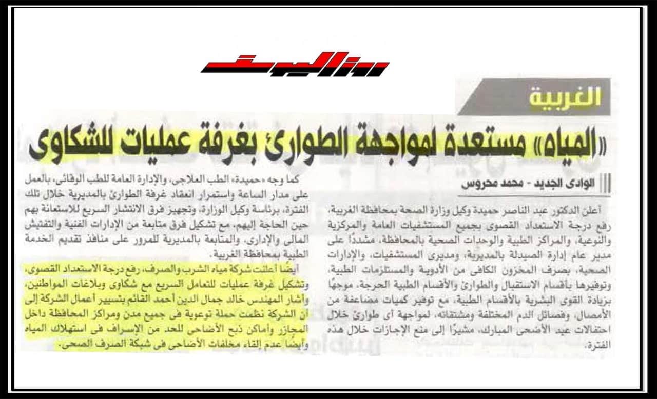 المياه مستعدة لمواجهة الطوارئ بغرفة عمليات للشكاوى