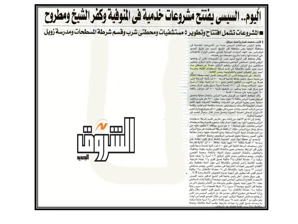 اليوم السيسي يفتتح مشروعات خدمية في المنوفية وكفر الشيخ ومطروح .