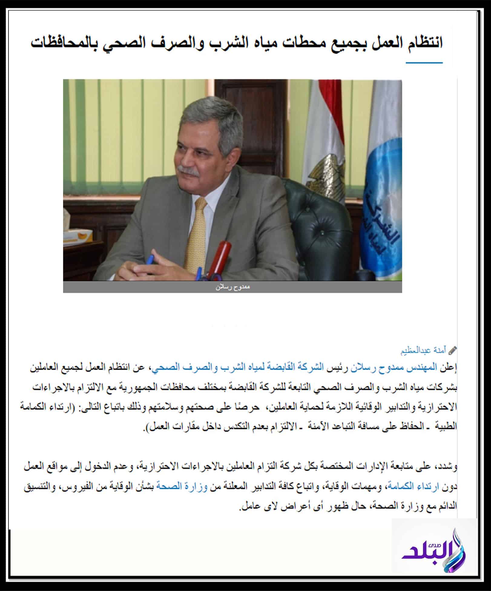 انتظام العمل بجميع محطات مياه الشرب والصرف الصحي بالمحافظات .