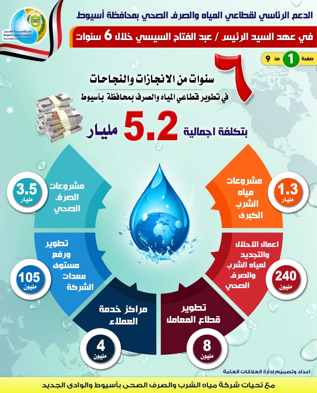 بالإنفوجراف.. 5.2 مليار جنيه قيمة استثمارات قطاعي مياه الشرب والصرف الصحي بأسيوط خلال الـ٦ سنوات الماضية