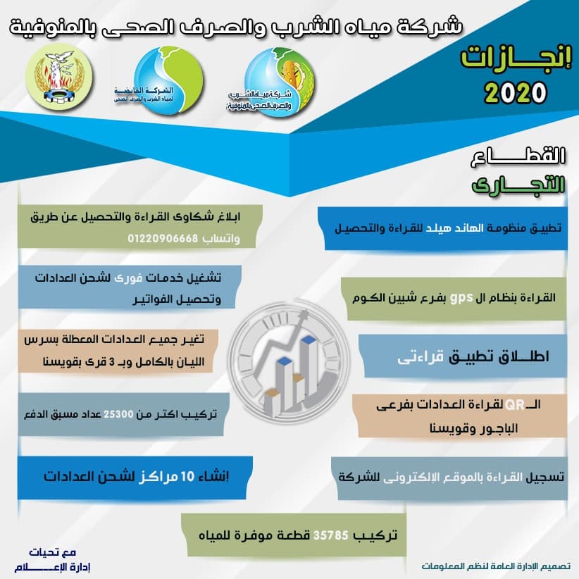 بالانفوجراف: انجازات شركة مياه المنوفية لعـــــام 2020 .