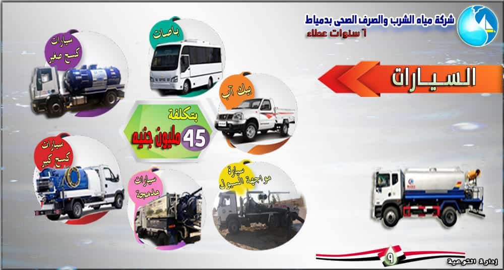 ولفت، إلى تدعيم الحملة الميكانيكية لقطاعي المياه والصرف بالشركة بعدد من المعدات والسيارات بتكلفة ٤٥ مليون جنيه.