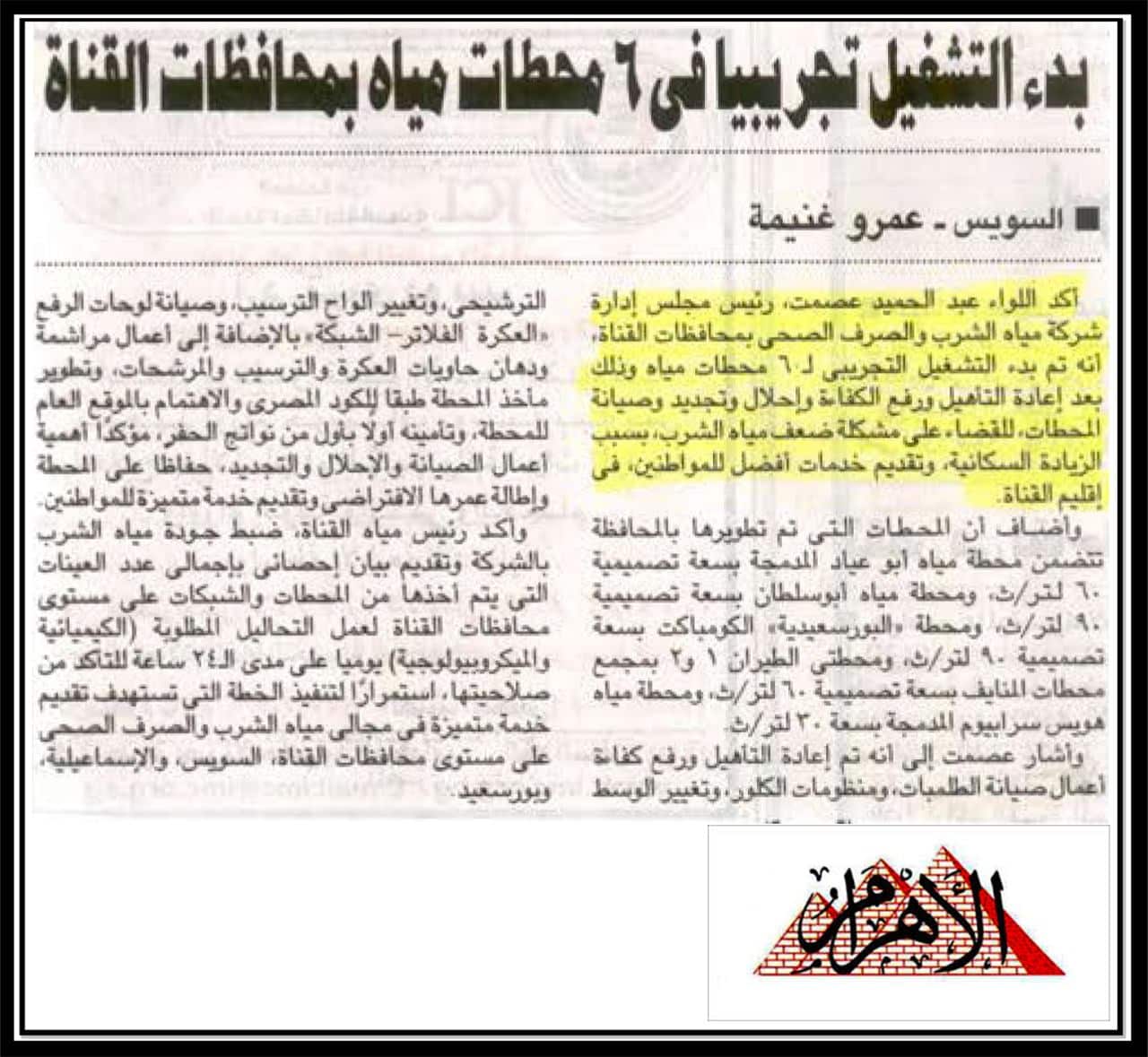 بدء التشغيل تجريبيا في ٦ محطات بمحافظات القناه