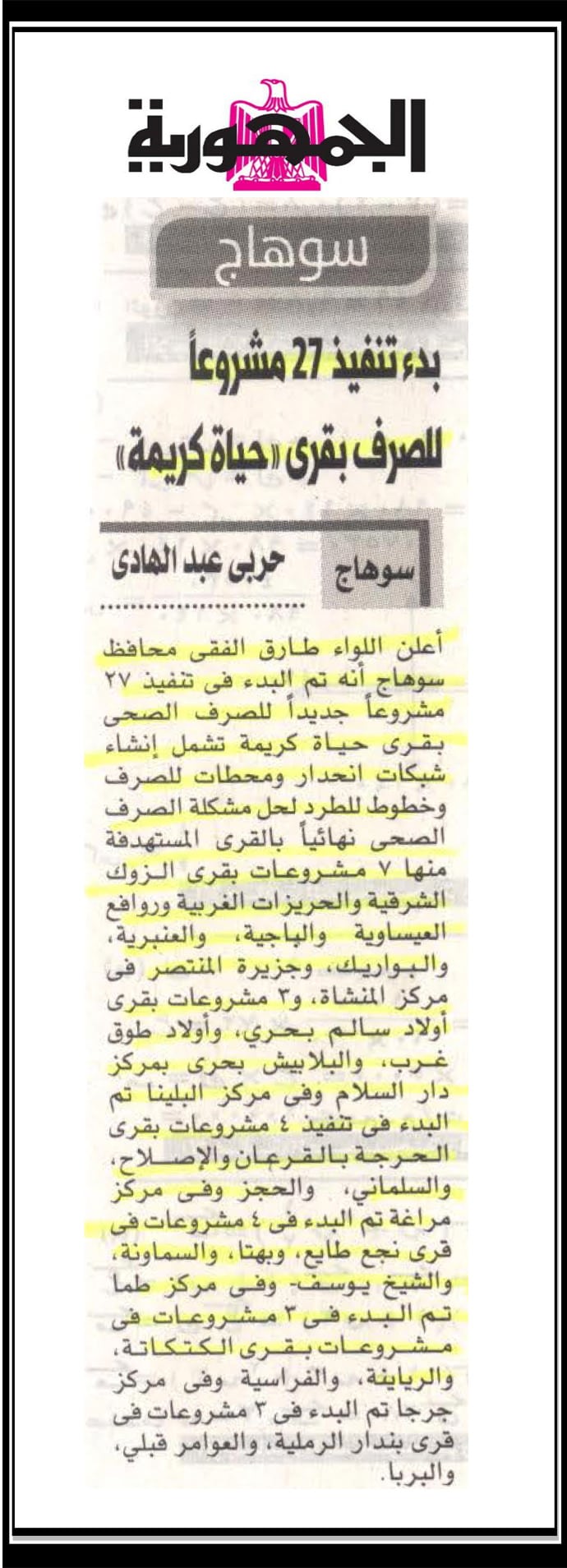 بدء تنفيذ 27 مشروعا للصرف بقرى حياة كريمة