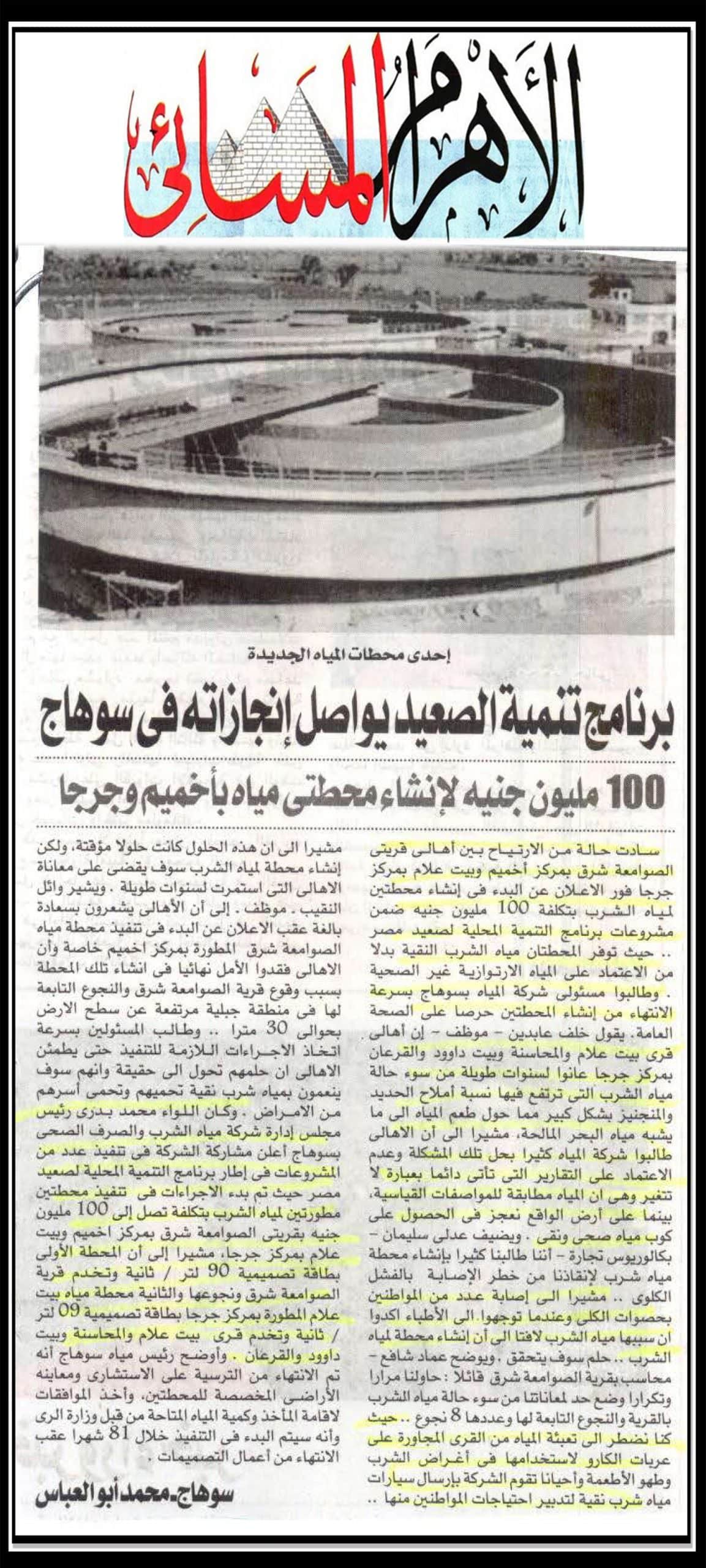 برنامج تنمية الصعيد يواصل انجازاته في سوهاج … 100 مليون جنية لانشاء محطتي مياه باخميم وجرجا .