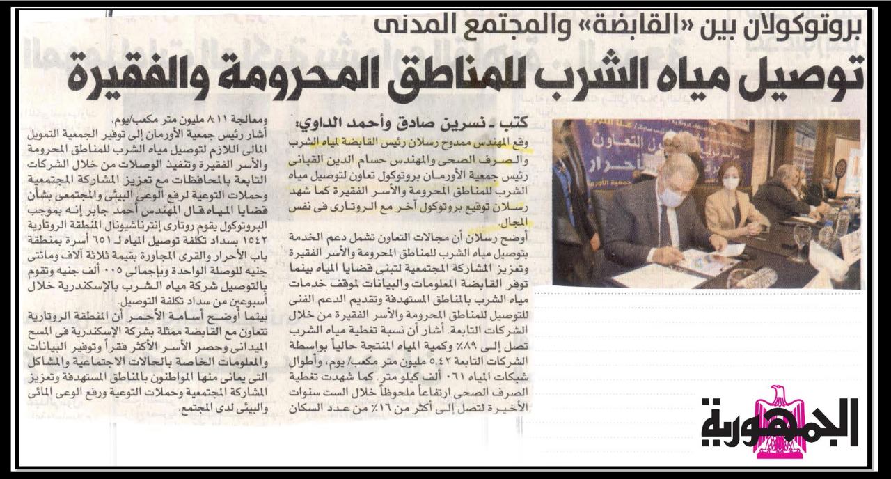 بروتوكولان بين القابضة والمجتمع المدني .. توصيل مياه الشرب للمناطق المحرومة والفقيرة .