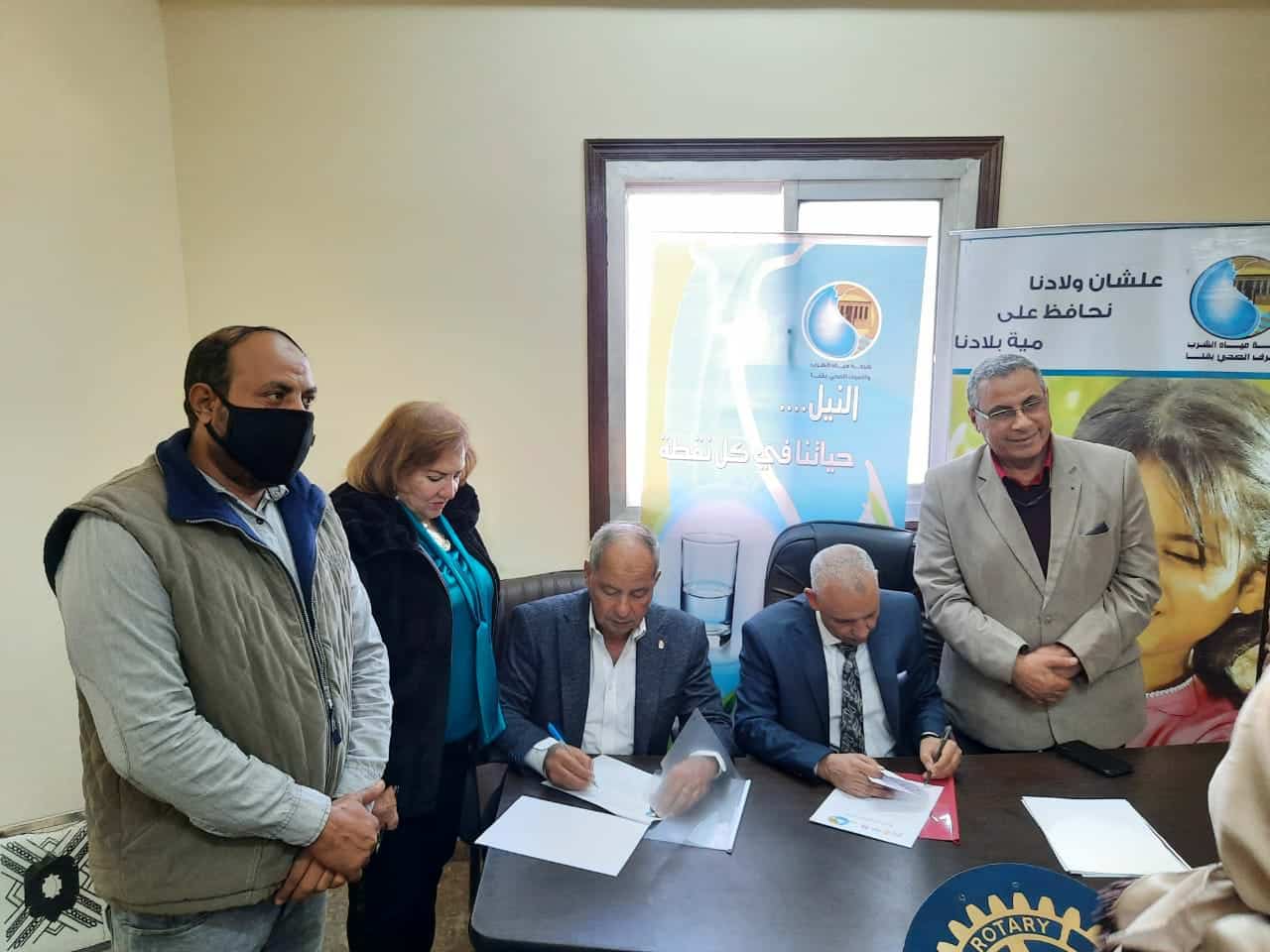 ووقع المهندس رجب عرفه، رئيس شركة مياه الشرب والصرف الصحي بقنا، اليوم، اتفاقية التعاون مع نادي روتاري ويمثله المهندس هشام محمد رئيس مجلس إدارة النادي، والسيدة اقبال كامل مسئولة المشروع والمهندسة نيرة عبدالوهاب رئيسة لجنة المياه بالمنطقة الروتارية، لانشاء آبار مياه بتكنولوجيا الترشيح الطبيعي علي ضفاف نهر النيل RBF، وزيادة كمية مياه الشرب المنتجة من محطات المياه باقل تكلفة ممكنه.