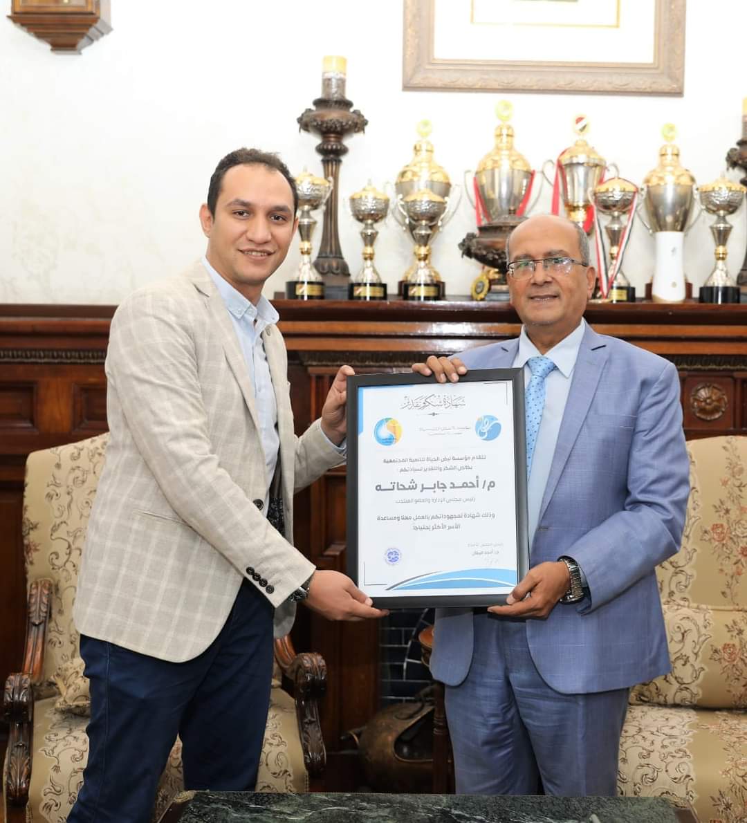 والدكتور عبد الله طايل مدير إدارة التوعية، وذلك لمجهودات شركة مياه الإسكندرية بتوصيل المياه للمناطق والأسر الأشد إحتياجاً ورفع الوعي المائي بالقري الأكثر إحتياجاً بمحافظة الإسكندرية.
