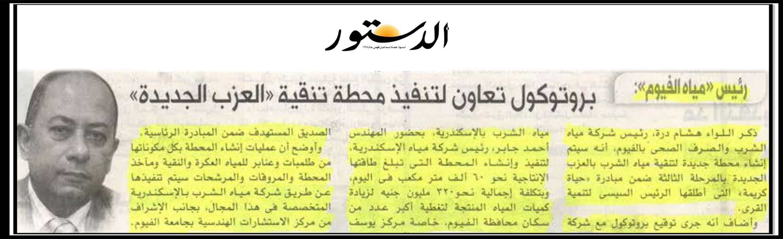 بروتوكول تعاون لتنفيذ محطة تنقية “العزب الجديدة”