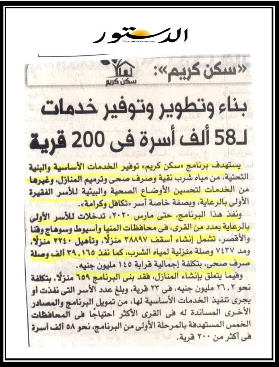 بناء وتوفير خدمات لـ 58 أسرة في 200 قرية.