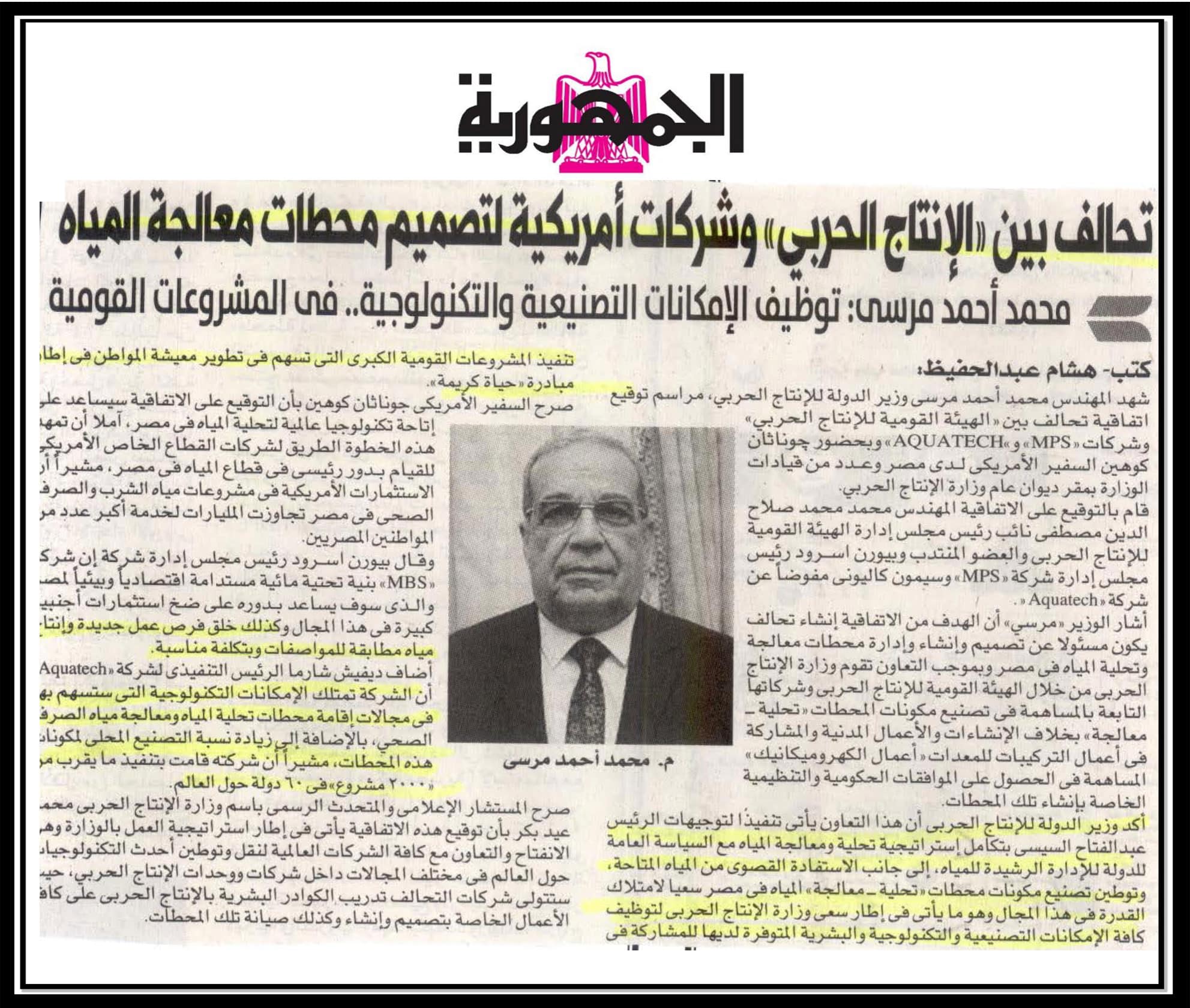 تحالف بين الانتاج الحربي وشركات امريكية لتصميم محطات معالجة المياه
