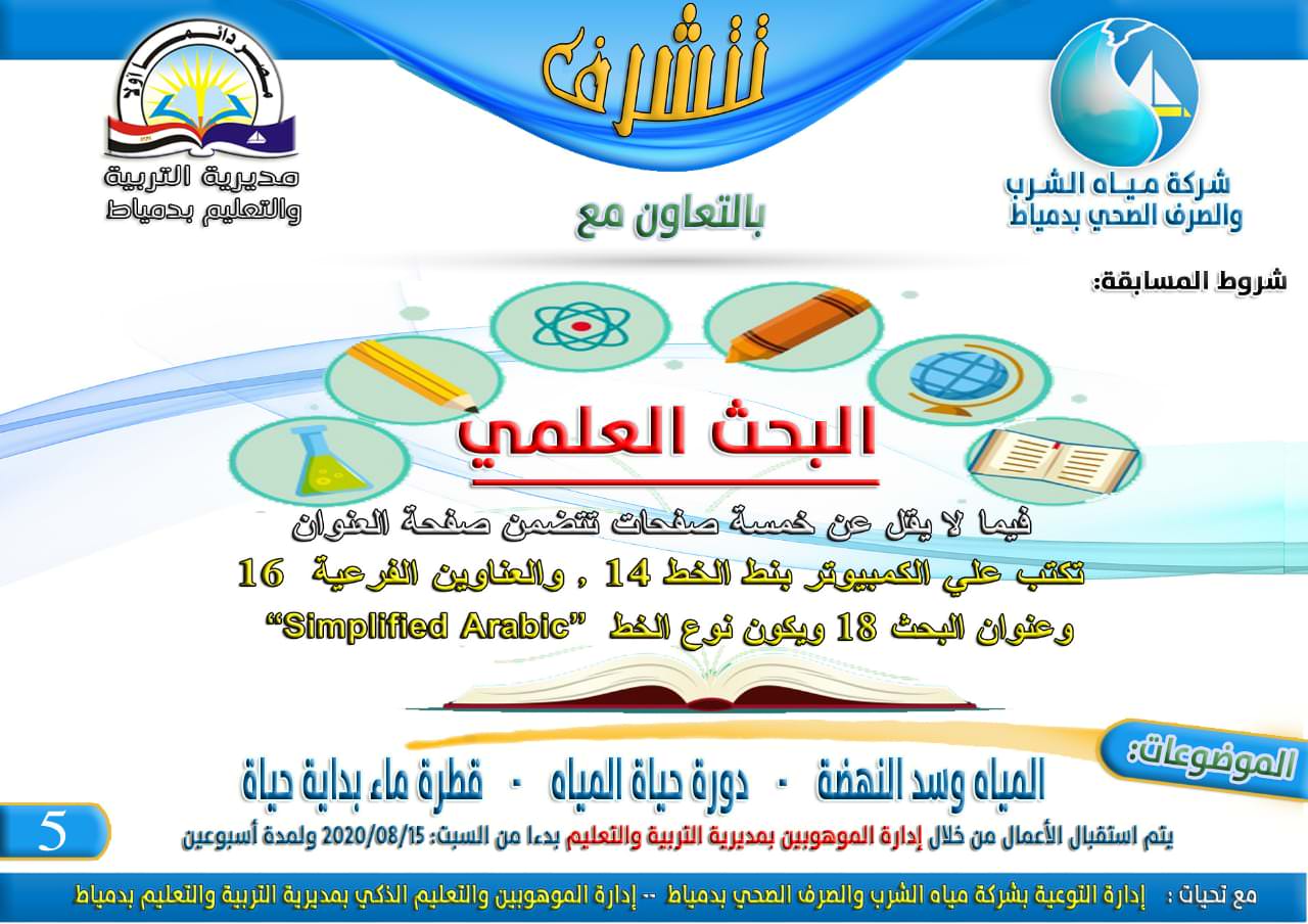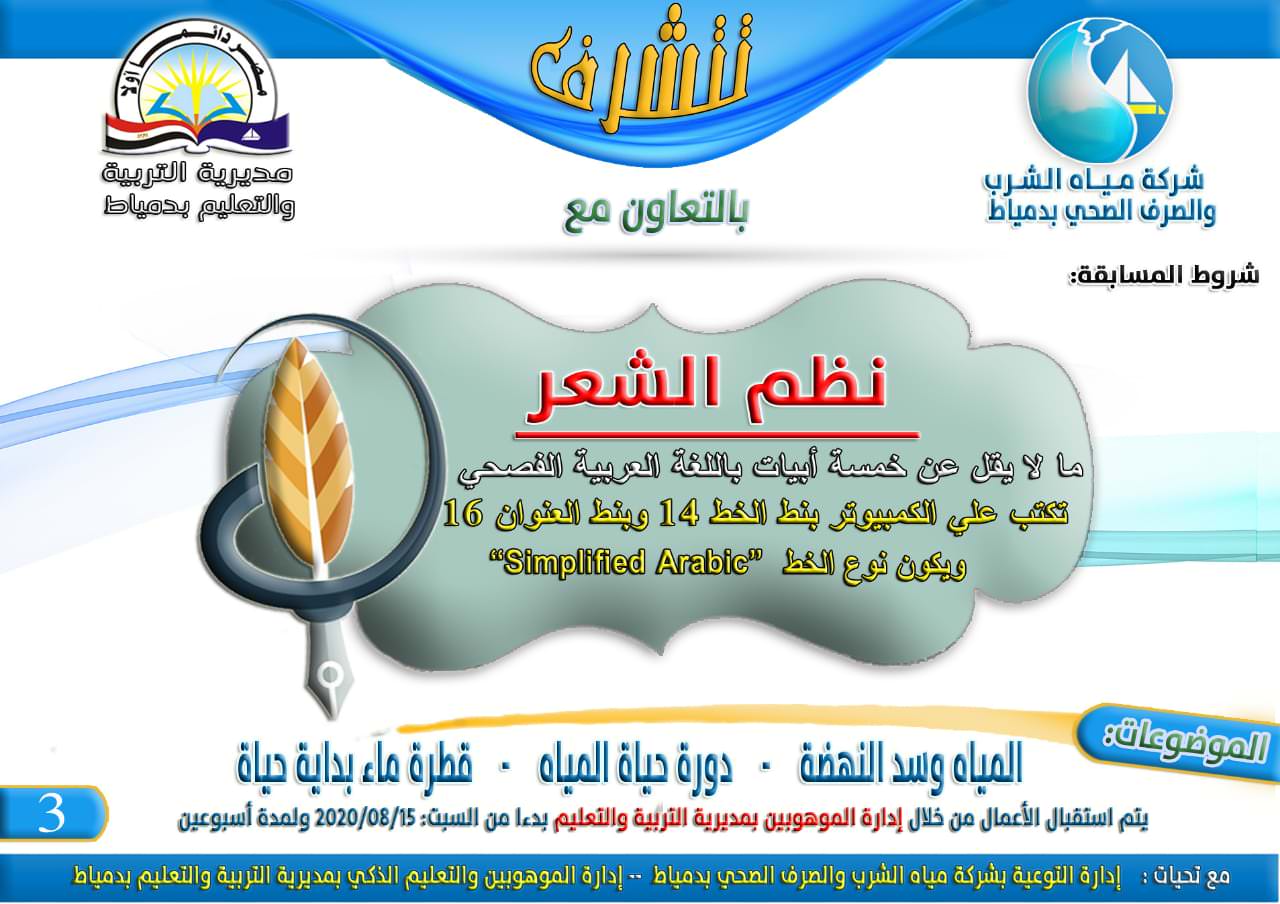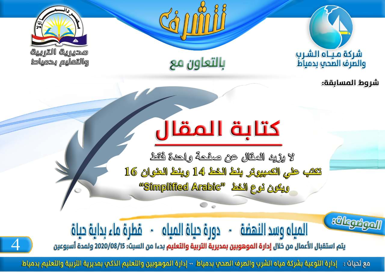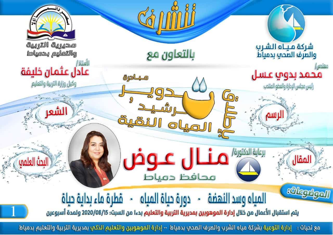 تحت رعاية محافظ دمياط إطلاق مبادرة توعوية فنية للطلاب عن المياه مياه دمياط.. حملة توعوية عن ترشيد استهلاك المياه .