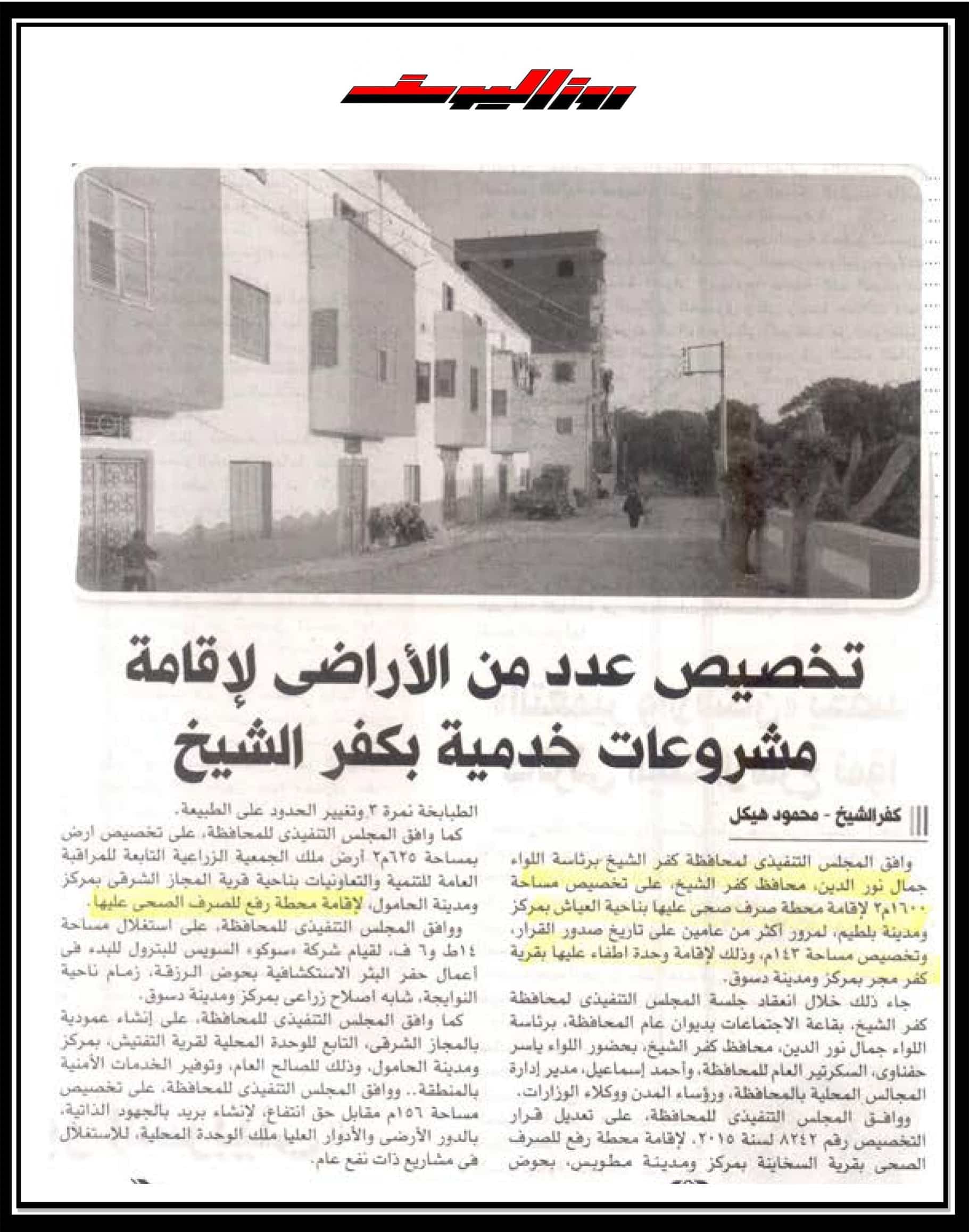 تخصيص عدد من الاراضي لاقامة مشروعات خدمية بكفر الشيخ