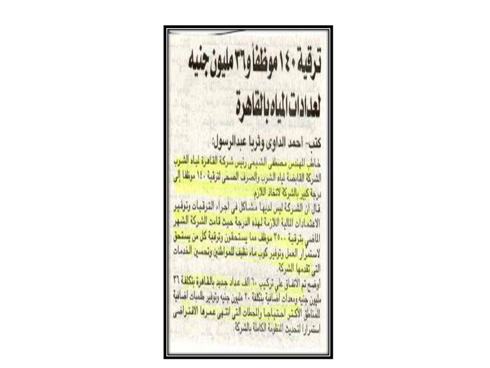ترقية 140 موظفاً و36 مليون جنية لعدادات المياه بالقاهرة ….2016/2/22