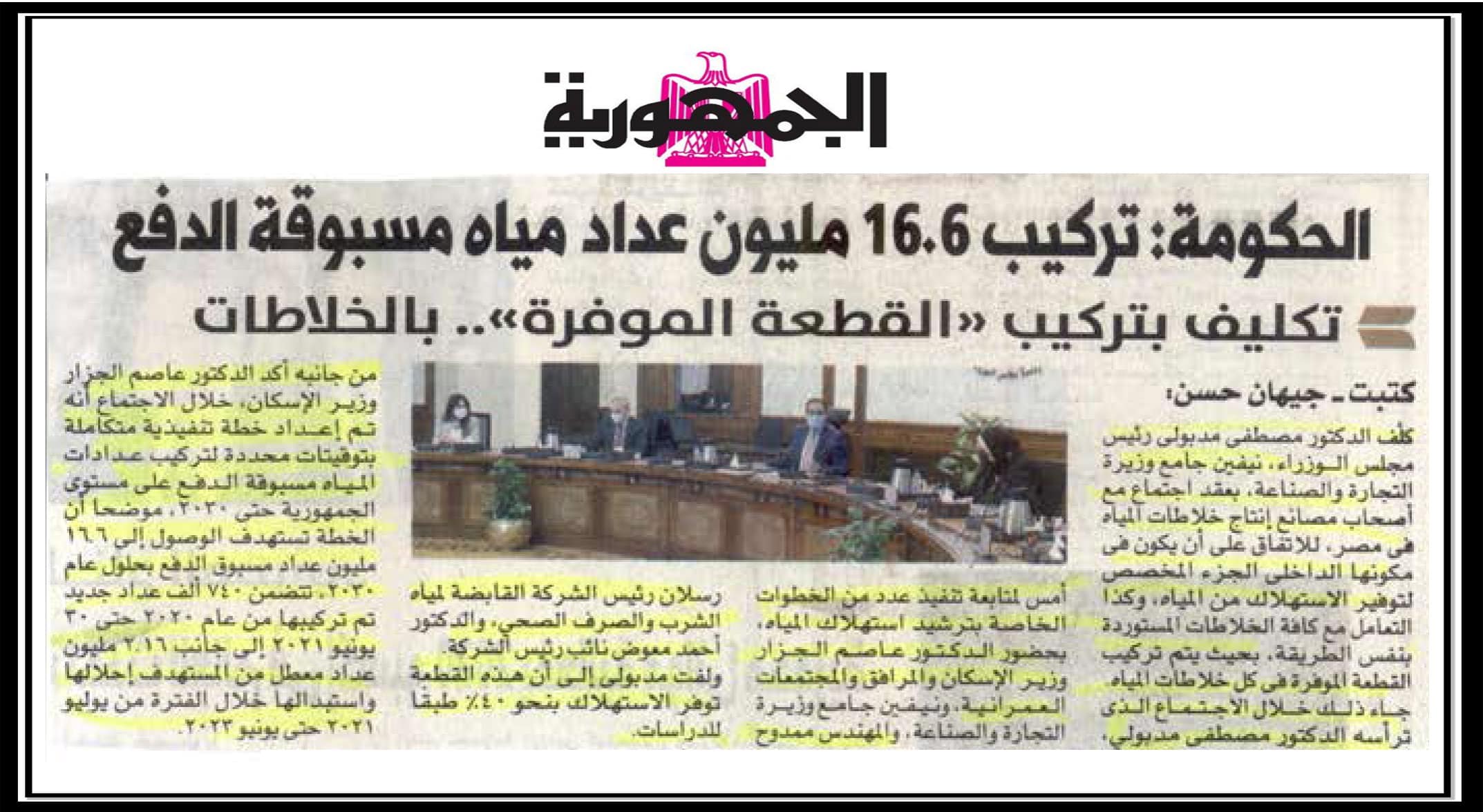 تركيب 16.6 مليون عداد مياه مسبوق الدفع