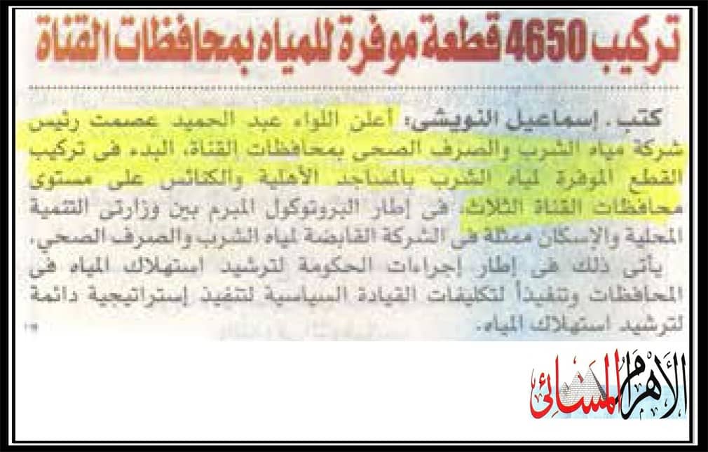 تركيب 4650 قطعة موفرة للمياه بمحافظات القناة .