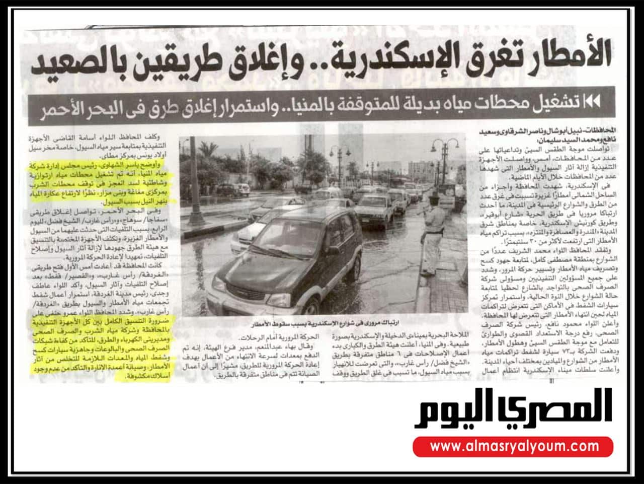 تشغيل محطات بديلة للمتوقفة بالمنيا … واستمرار واغلاق طرق في البحر الاحمر .
