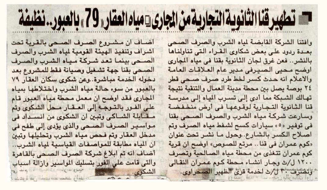 تطهير قنا الثانوية التجارية من المجارى – مياه العقار 79 بالعبور نظيفة
