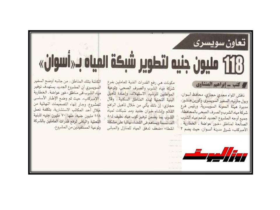 تعاون سويسري : 118 مليون جنية لتطوير شبكة المياه بــ ( اسوان )
