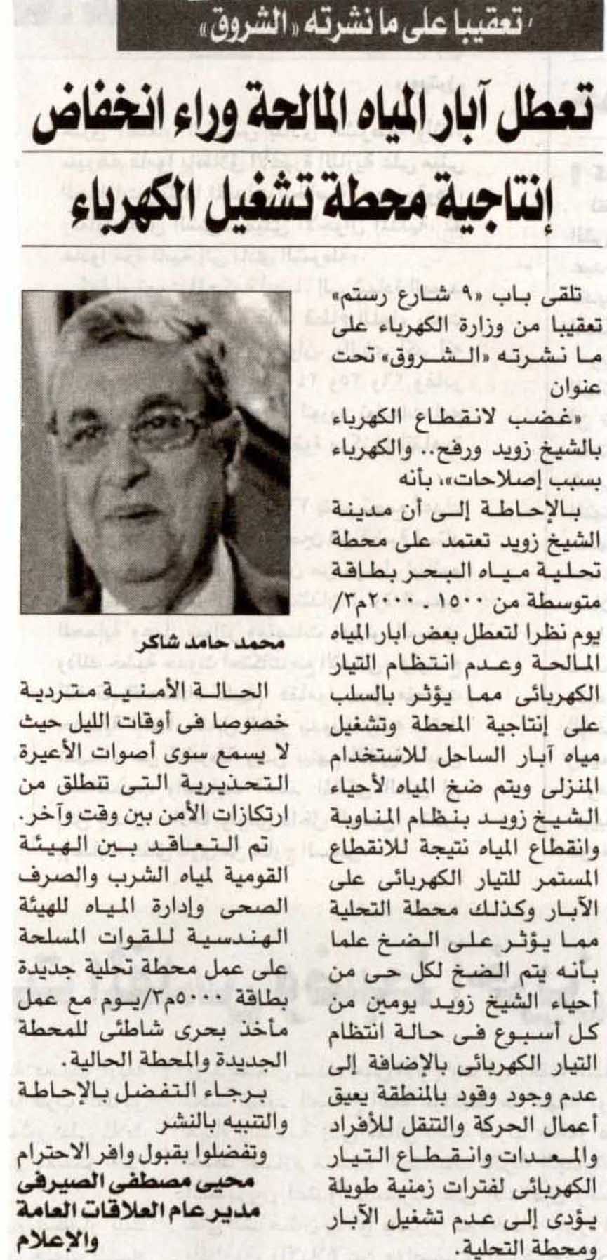 تعطل ابار المياه المالحة وراء انخفاض انتاجية محطة تشغيل الكهرباء